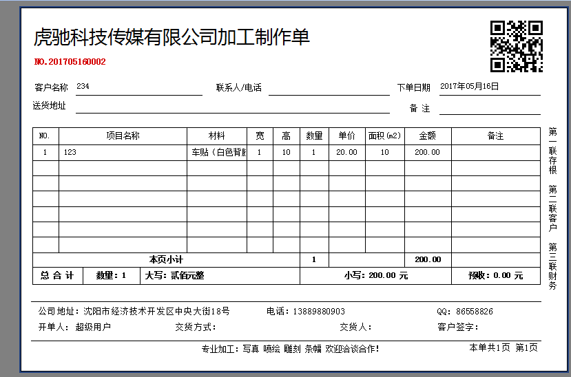 飛揚(yáng)動(dòng)力廣告公司管理軟件可以客戶自己的需求,設(shè)計(jì)不同的打印樣式。飛揚(yáng)動(dòng)力廣告公司管理軟件可以將客戶的公司logo、二維碼等等直接放在打印的樣式中。這樣在打印的時(shí)候就可以帶出來。方便增加公司的形象。